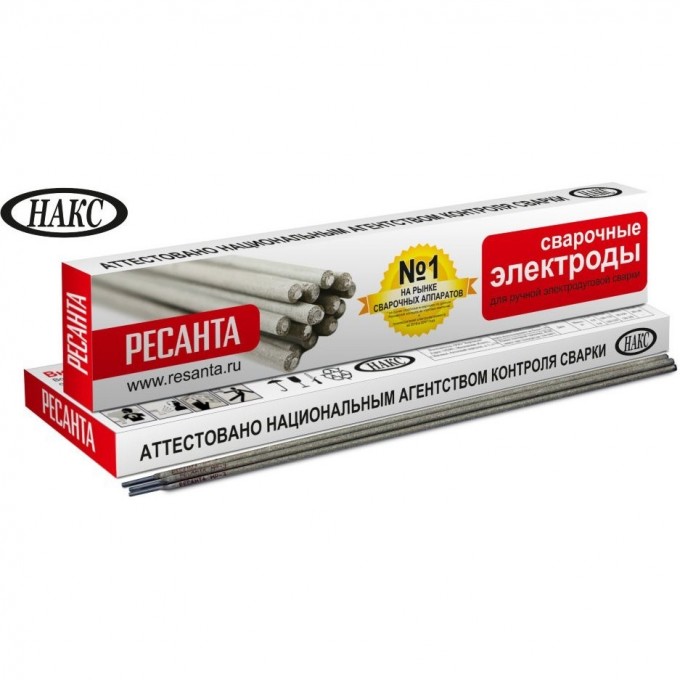 Сварочные электроды РЕСАНТА предназначены для ручной дуговой сварки стальных конструкций переменным или постоянным током. Данные электроды могут применяться как в быту, так и для сварки ответственных конструкций из углеродистой стали с массовой долей углерода до 0,25%. Сварка возможна в различных пространственных положениях, кроме сварки на спуск. Электроды РЕСАНТА относятся к высококачественным электродам типа МР-3 с рутиловым покрытием и изготовлены в соответствии с требованиям ГОСТ.